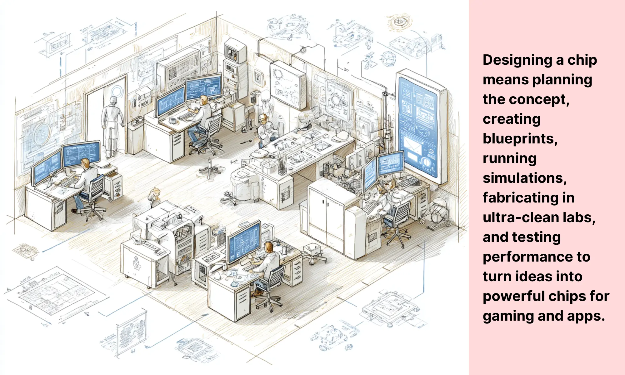 Designing a computer chip is a bit like building a city, but on a microscopic scale. Here’s how it works: